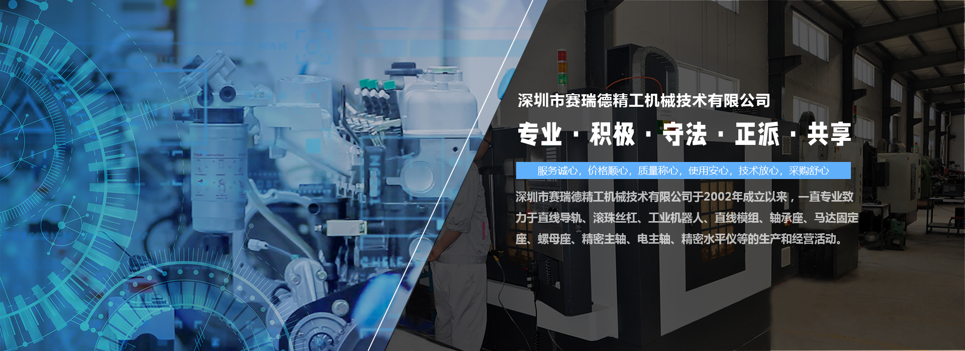 深圳市賽瑞德精工機(jī)械技術(shù)有限公司于2002年成立以來(lái),一直專(zhuān)業(yè)致力于直線導(dǎo)軌、滾珠絲杠、工業(yè)機(jī)器人、直線模組、軸承座、馬達(dá)固定座、螺母座、精密主軸、電主軸、精密水平儀等的生產(chǎn)和經(jīng)營(yíng)活動(dòng)。